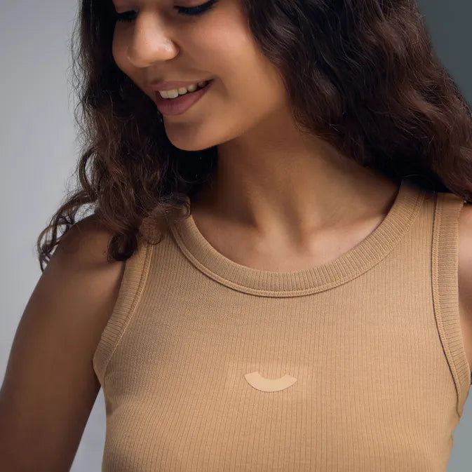 - Wide bound armhole and neckline for seamless comfort.